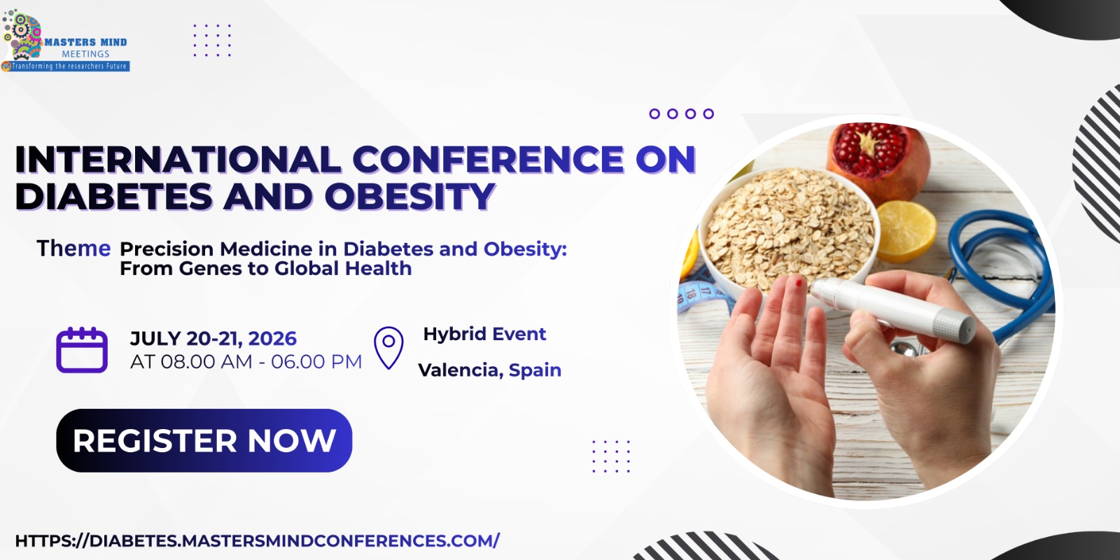 MembershipMasters Mind Conferences is delighted to announcing “International Conference on Diabetes& Obesity”, scheduled to take place on July 20-21, 2026|Valencia, Spain .This upcoming conference will revolve around the theme “Precision Medicine in Diabetes and Obesity: From Genes to Global Health”